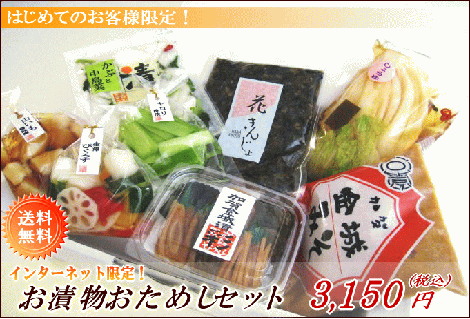 初回のお客様限定!人気のある自慢商品を送料無料でお届けします。送料無料!お漬物おためしセット価格: 3,150円レビュー評価: 0.0 レビュー数:0 商品詳細 商品名 送料無料!お漬物おためしセット 内容 金城かぶら寿し(1枚入)、金城漬 彩、白菜のぬか漬、 山いも、金澤ぴくろす、こぼうず、大根一本漬ハーフ (内容は季節によって異なります。) 賞味期限 ・白菜のぬか漬/5日 ・かぶら寿し,金城漬,大根一本漬,山いも,金澤ぴくろす/10日 ・こぼうず/60日 配送について クール便にてお届けします 保存方法 冷蔵保存の上、お早めにお召し上がりください。 原料原産地名 国産 ※イメージ写真 人気商品をはじめ、季節のお漬物を盛り込んだお買い得商品を 【送料無料】でお届けします! 味噌漬、一夜漬など、 どれも人気のある当舗自慢の商品ば |